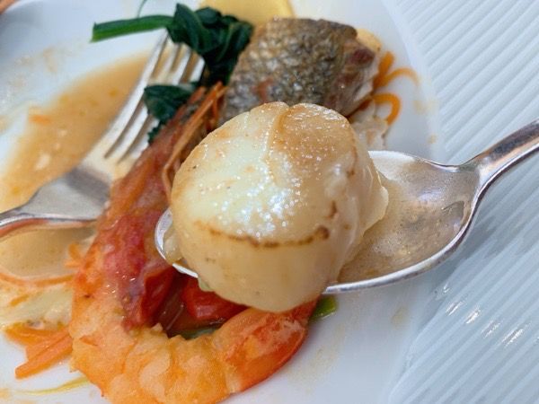 ホタテが肉厚で食べ応えがありブイヤベースは魚介の旨味が凝縮されていてとても美味しい!おかわりしたくなりました。