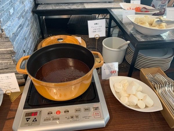チョコレートフォンデュ&マシュマロもありました。バナナをフォンデュしたらみんな大好きなチョコバナナも作れますね。
