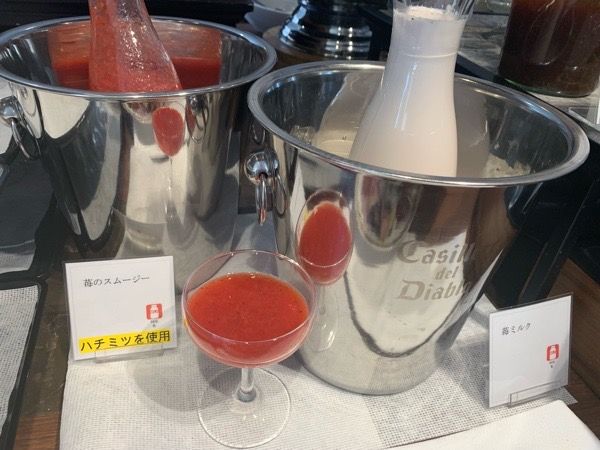 苺のスムージーに苺ミルクも。苺のスムージーが飲み放題って贅沢すぎる♪