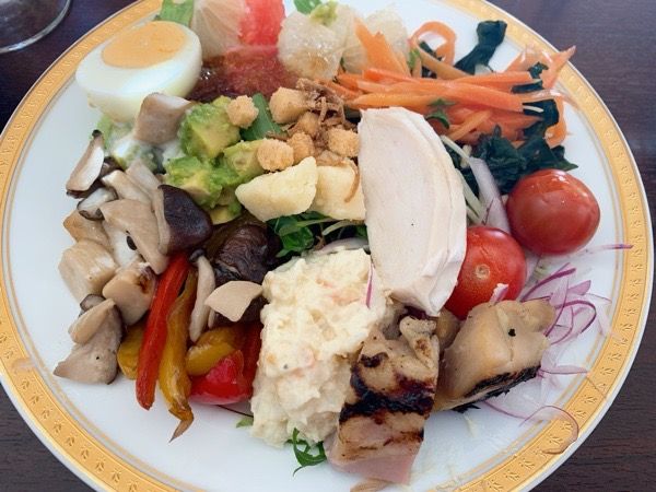 メインが来るまでサラダバーをいただきました。たっぷりお野菜やグリルチキンなといただけてメインが来る前にお腹いっぱいになりました。