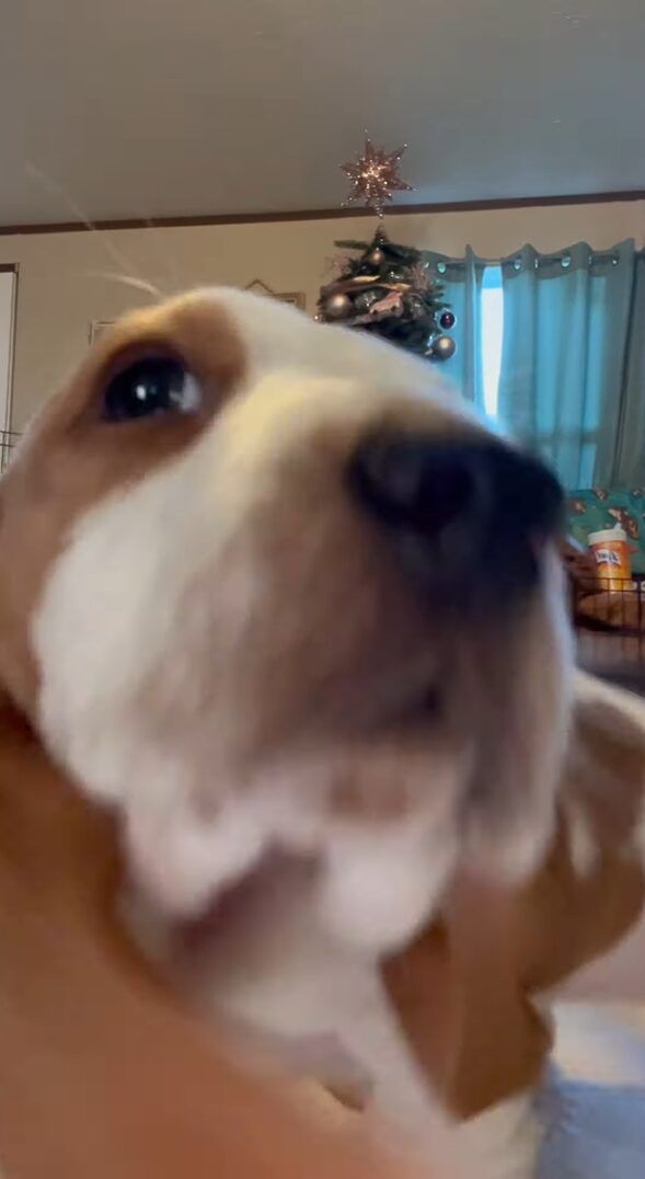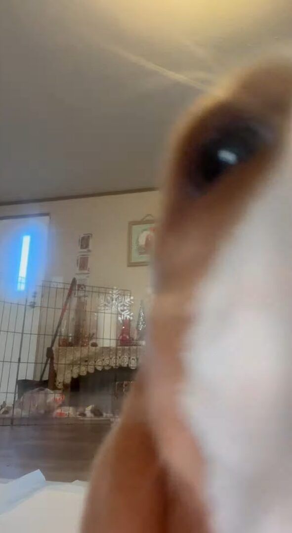 お部屋の中を散策中なのかそれぞれ動き回っているバセットハウンドの子犬たち。 そんな自由に動き回る子のうち1匹が、カメラを発見したようですよ!!