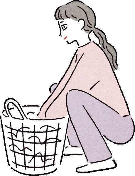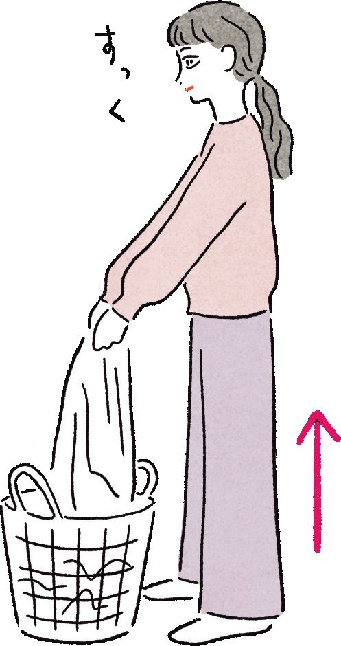 洗濯かごの前に深くしゃがみこんで洗濯物を取り、そのまま立ち上がればスクワット代わりに。面倒な洗濯も、トレーニングと思えばやる気が出てくる!
