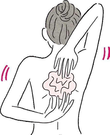 【バスタイム】ボディスポンジで肩甲骨をストレッチ。