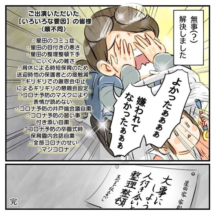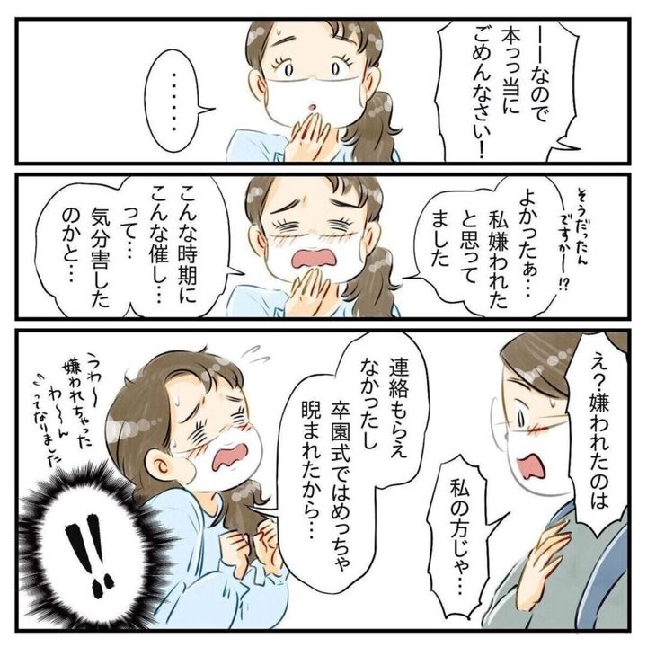 急いで藤阪さんに謝罪、卒園式で無視されたと思ったのは、にらまれたと勘違いしたからだったそう。藤阪さんも星田さんと同じように、嫌われてしまったのではと不安を抱えていたのですね。