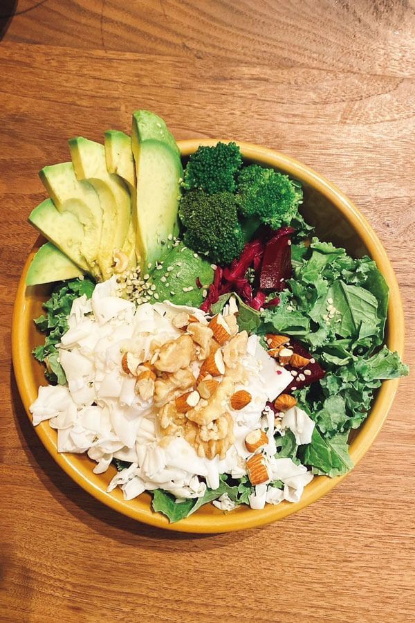 「朝は腸活も考えてプロテイン食材たっぷりのサラダを 。自宅でも作りますが、これは気分をかえてカフェで頼んだもの」(Flowers5期生 白石世奈さん)