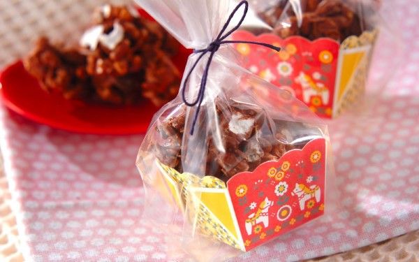1回で30人前が完成! 板チョコを電子レンジで溶かしたら、マシュマロとグラノーラを混ぜ合わせて固めます。ザクザク食感が楽しく、10分で作ったとは思えない出来栄え。ひと口大にカットして、かわいくラッピングしましょう。