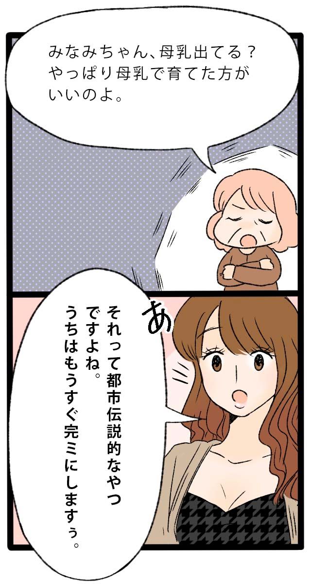 「それって、都市伝説的なやつですよね。うちはもうすぐ完ミにしますぅ~。」