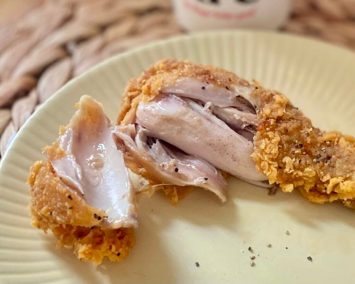 衣の表面には大粒のブラックペッパーが散らされて、その様子に思わずじゅるり。食べてみると、口に含んだ瞬間衣のザクザク食感に満たされます! 「オリジナルチキン」の味わいとは全く異なる新しい味わいです。