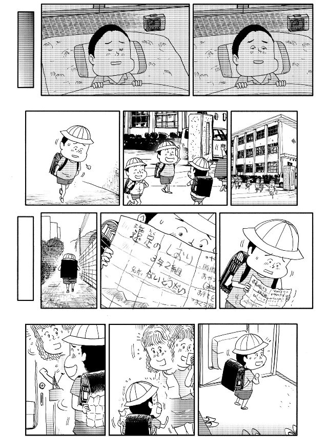 男の子の不安や切なさ、ゴミ箱で見つけたしおりに書かれてた「持ってくるもの おべんとう」の文字に、息子が自分を気遣っていたことに気付いたお母さんの気持ち、台詞は一切ないのに想いが読める描写が思わず泣けてしまいますよね。