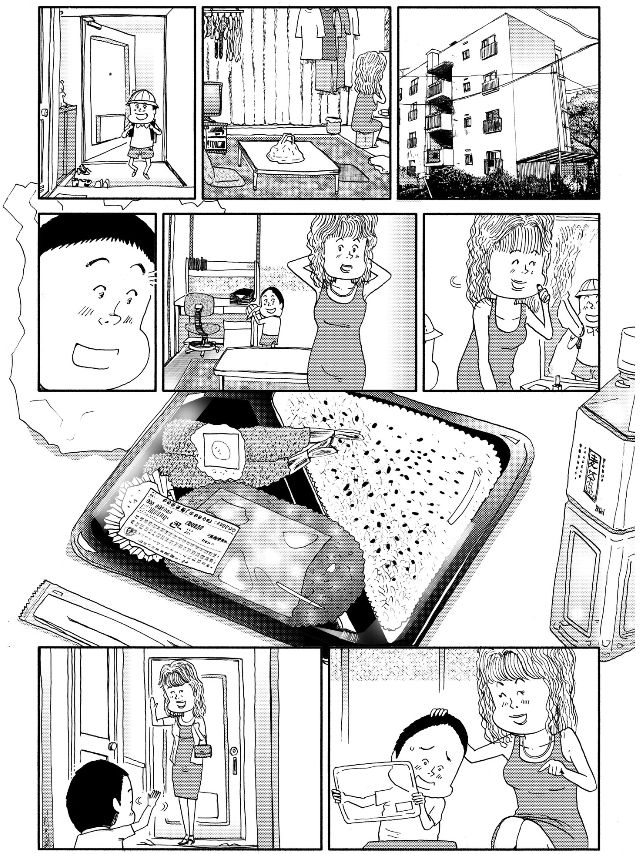 夜に仕事へ出かけるお母さんから晩御飯用に渡されたお弁当。「エビフライとハンバーグよ~!好きでしょ?」なんて話すお母さんの声が聞こえてきます。一方、内心寂しく感じつつも、一生懸命働くお母さんを気遣い平気な素振りを見せている男の子。
