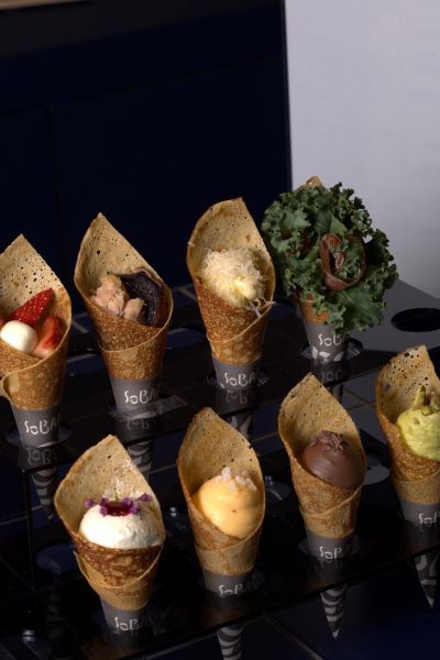 手のひらサイズのそば粉クレープで種類は、18種類からスタートする予定。カスタードクリームやフルーツ、プリンなどのスイーツ系からタンドリーチキンやバンバンジー、ニース風サラダなどお食事系も登場します。