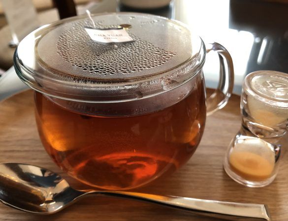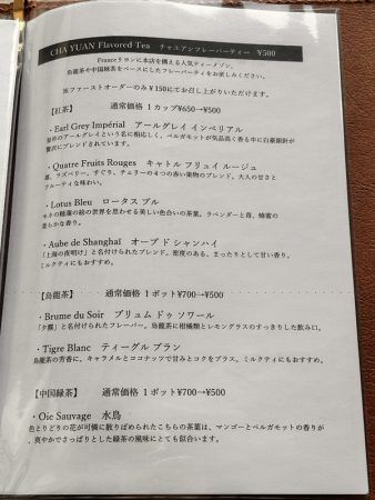 フランス・リヨンに本店を構える紅茶専門店「CHA YUAN(チャユアン)」の紅茶は、ファーストオーダーのみ+150円で飲むことができます。苺のアフタヌーンティーセットに合う紅茶をいろいろ飲み比べてラインナップされた紅茶だと聞き、迷わずチャユアンのフレーバーティーを一杯目に選びました。