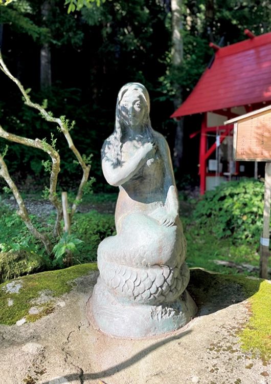 境内には下半身が龍になった辰子の像が。たつこ姫を信仰すれば、美しさと若さが光り輝くという言い伝えが。