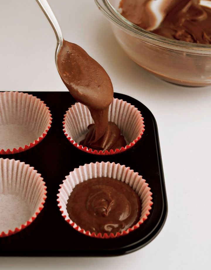 型に(1)を均等に入れる。180℃のオーブンで12~15分焼く。型に入れたまま、粗熱を取り、型から出して網などにのせ、完全にさます。