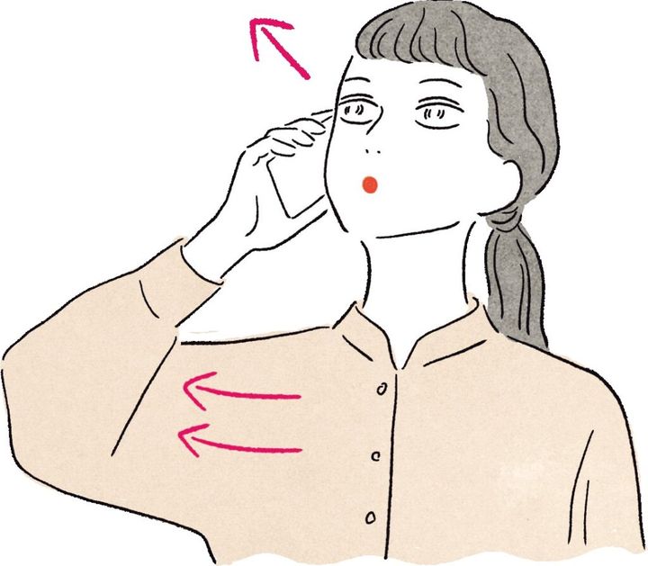 【電話をする】胸を開いて上を向き、首ストレッチ。