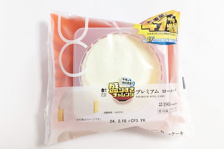 SNSやニュースで話題になっているローソンの「盛りすぎチャレンジ」キャンペーン。価格はそのままで、総重量が47%アップされた商品が期間中に19アイテム発売されます。スイーツからは、コンビニスイーツの代名詞、「プレミアムロールケーキ」。持った瞬間、ずっしり感がすごかったです!