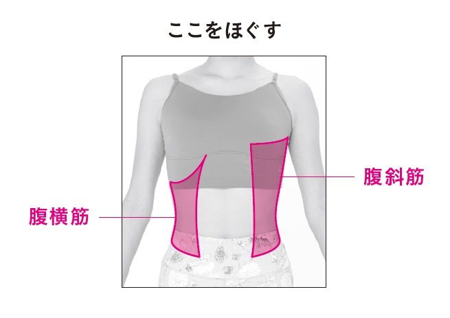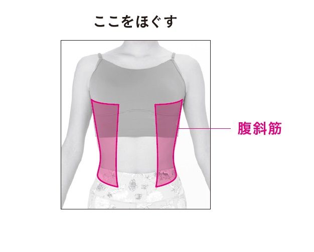 脇腹の筋肉「腹斜筋」をほぐして、肋骨と骨盤の間隔を広げよう。お腹を包み込む「腹横筋」を引き締めれば、くびれが現れる!