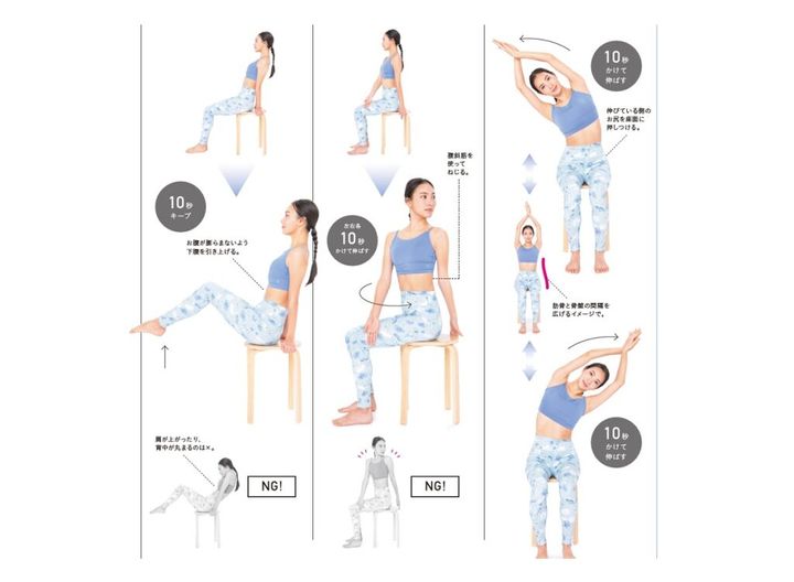 3. くびれができる! 座ったままでOK、下腹ぽっこり解消“やせストレッチ”