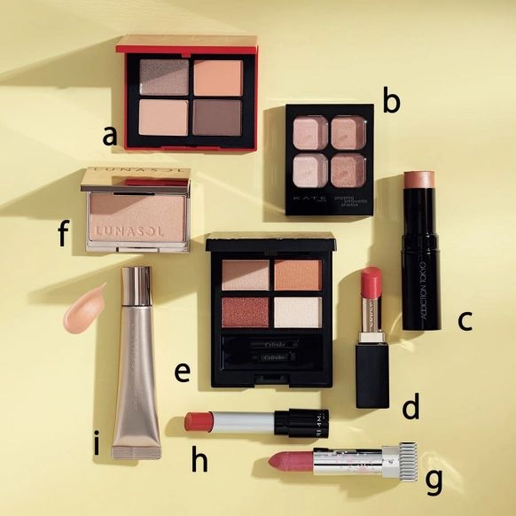 洗練された大人っぽさのあるベージュのワントーンメイクを可愛げと血色感をにおわせるトーンで仕上げるのが、この春のおすすめ。ほわんと甘い顔も、ツヤキラ質感をポイントで盛ってメリハリを出すことで美人度がアップします!