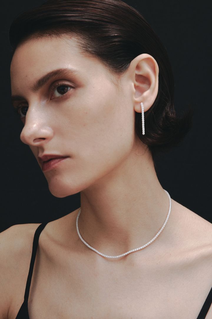 まずは、ストーンを主役にしたシリーズ。リアルに90年代を体験している我ら大人には、たまらなく懐かしいテニスブレスレットを彷彿をさせるミニマルなデザインが、今また気分なことに気づかされます。ブレスレット、ネックレス、ピアスと全部つけても上品。この春、トレンドの90sなシンプルドレスにも映える!