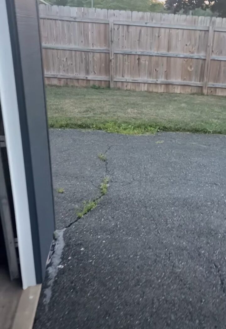 なぜなら、ドアのすぐ横にあるガレージのシャッターは開いているのです。 もういつでもガレージに入れるのですが、CJくんは気付いていないみたいです。