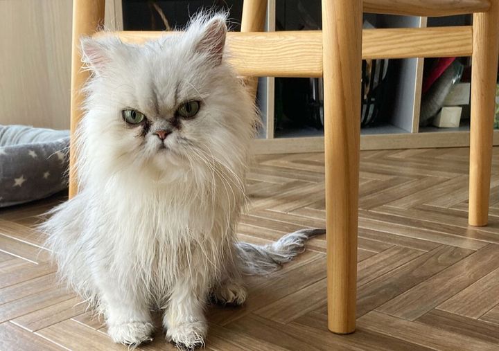 保護されて、1年前に飼い主の元へやってきたペルシャ猫の女の子。抱っこはあんまり好きじゃないけれど、ストーカーはやめられないツンデレガールで、くるくる変わるグリーンの目がチャームポイントです。本誌2023年6月号にて、わたなべとしふみさんによるジジの紹介イラストを掲載しています。
