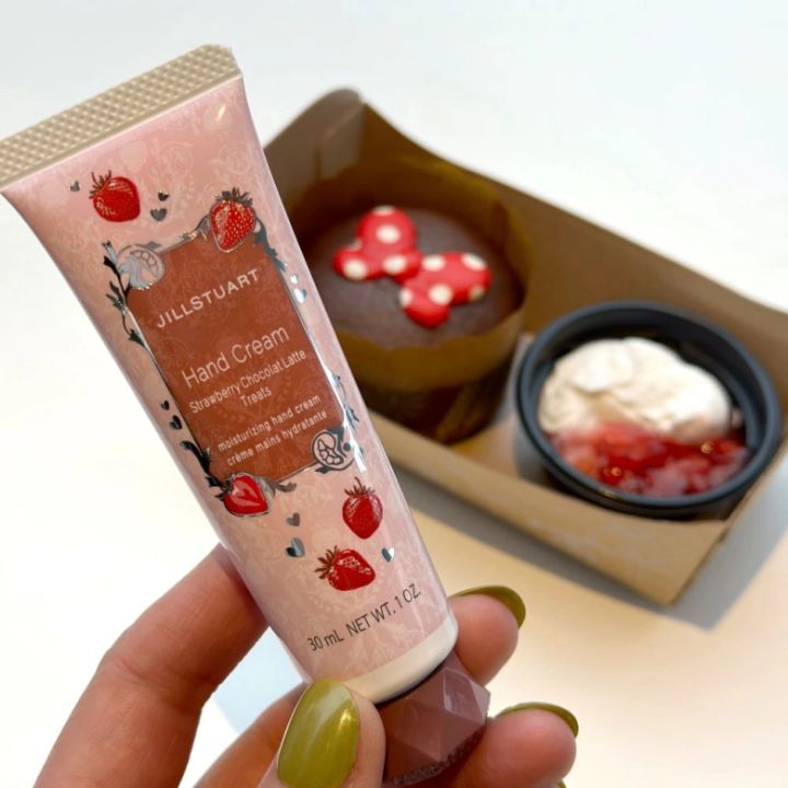 「ジルスチュアート ハンドクリーム」は、【ストロベリー ショコララテ】の名前の通り、いちごに濃厚なチョコレートドリンクが合わさったような、甘みとまろやかさが引き立つ香りです。