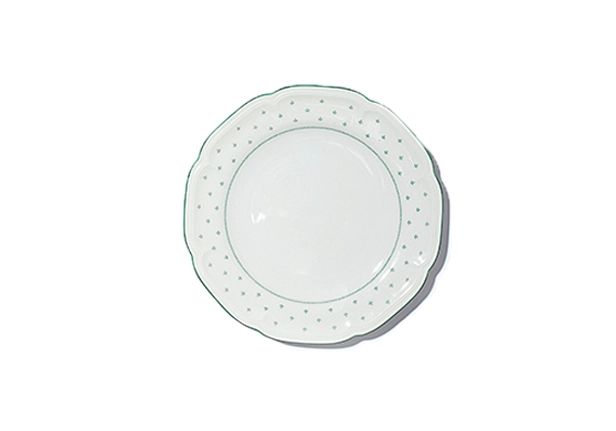 〝木〟の木が高まる繊細なリーフ模様なので、万能に活躍。強い運気が宿る旬の食材を盛って♡皿(直径25㎝)¥2,420/アフタヌーンティー・リビング