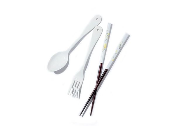 清潔感のあるクリアな白のカトラリーセット♡美しい光沢感を持つフォーク&スプーンに、可愛らしい花柄のお箸を添えて華やかな食卓に。箸¥1,100、フォーク¥880、スプーン¥880/以上アフタヌーンティー・リビング