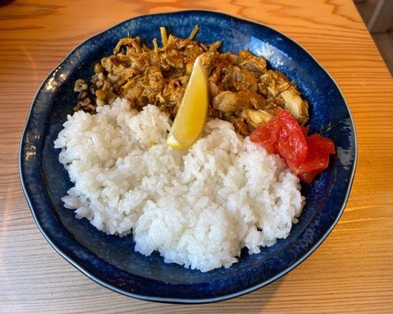 レモンものっていましたが、まずはそのままいただきました。ほぐしたチキンがたくさん入っていて、スパイスをすごく感じます。カレーにレモンって合うのかなと思って、控えめにレモンを絞ってみましたが、すごく合いました。すぐに思いっきり絞りました。食べ進めるとだんだん身体が温まってきた気がして、食べ終わる頃には汗をかいていました。
