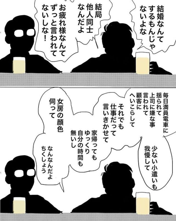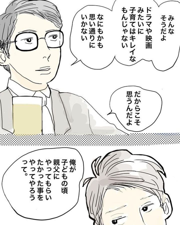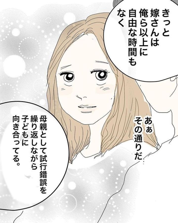 おーちゃん(@ohchan_65)さんの夫は飲み会の席で、妻であるおーちゃんさんの不満を口にしていました。子どもが生まれてからおーちゃんさんの態度が変わったと嘆く夫は「結婚なんてするもんじゃないよな」と言います。すると一緒に飲んでいた同僚から「子育てをするというのは思い通りにいかないものだ」と前置きされた上で「大変な時期に関わらないと親子関係は築けないんじゃないか」と的確なアドバイスをもらいます。果たしてそれを聞いた夫がとった行動とは?