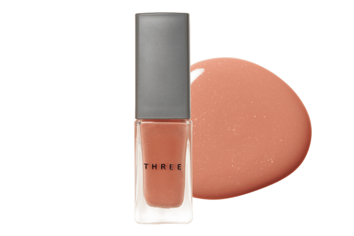 ローズとレッドの偏光パールがきらりと輝く。THREE ネイルポリッシュ X67 ¥1,980(THREE)