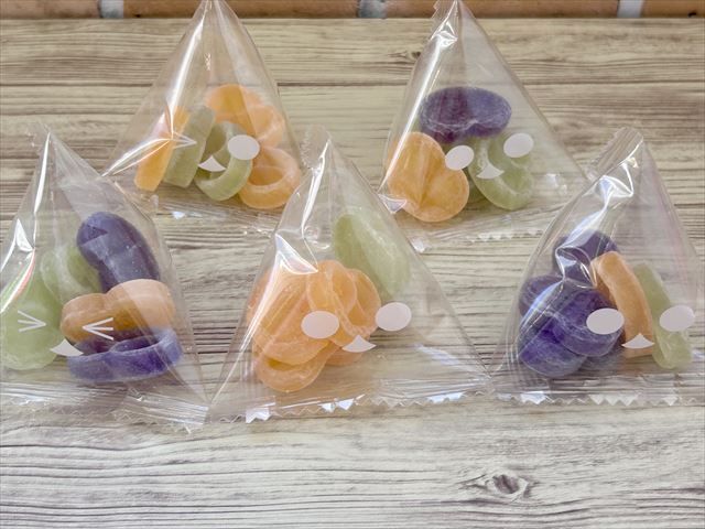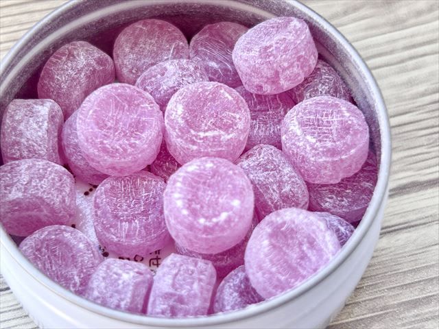 中には、グレープ味のキャンディが入っています。直径1cmほどの小粒サイズが可愛らしいですね。