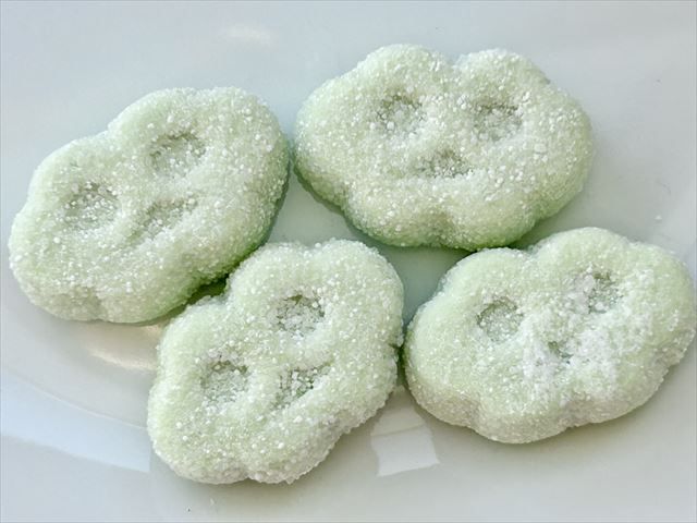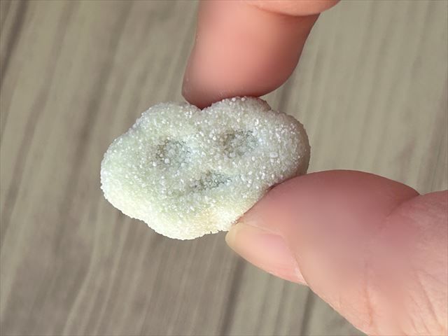 こちらはメロンソーダ味。柔らかいのに弾力のある噛み応えで、ほどよい甘さのメロンソーダ味が口の中に広がります。