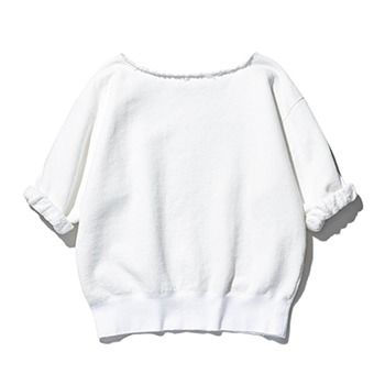 「丸みのあるシルエット、フリルのようなそでのフェミニンなデザインと、カジュアルなスエット地がマッチ。肉厚な生地の半そでは、春へ移り変わる微妙な気温の時季にも好都合」(スタイリスト・渡邉恵子さん)