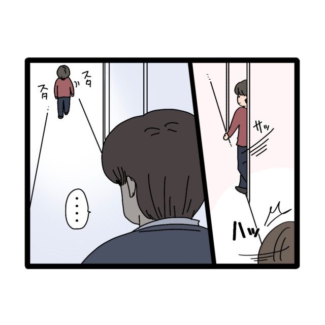 給湯室から出てきたハルトくんに見つからないよう身を隠していた学さんは、ハルトくんの後ろ姿を無言で見つめるのでした・・。