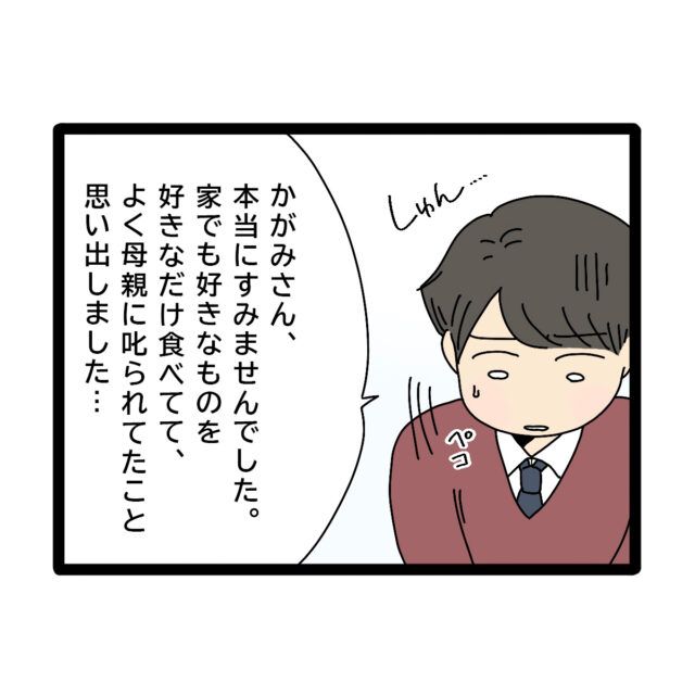 「かがみさん、本当にすみませんでした。家でも好きなものを好きなだけ食べてて・・よく母親に叱られてたこと思い出しました・・」