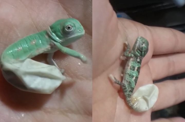 孵化したカメレオン、生まれて初めて体色を変化する瞬間をとらえた貴重な映像