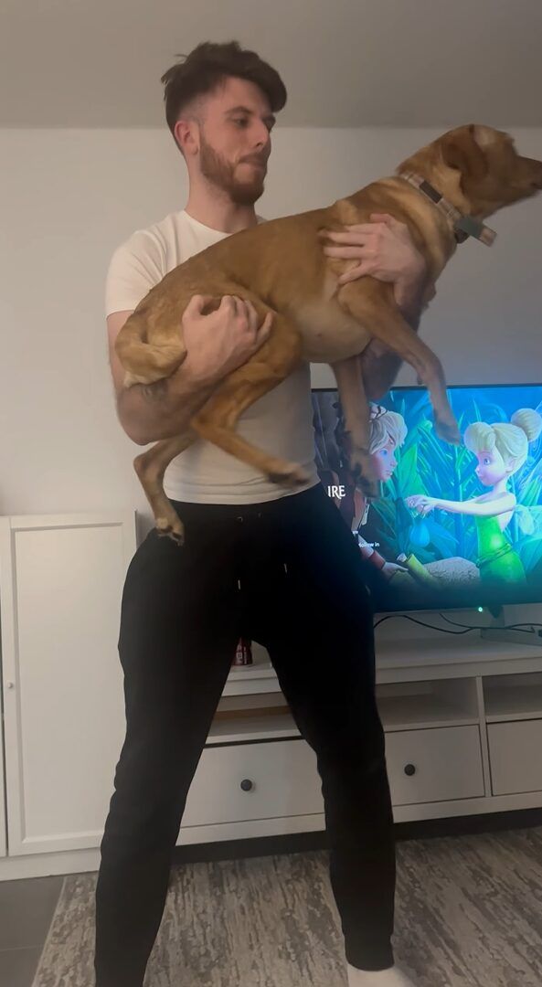 3. だっこしている愛犬を下ろしたら・・飼い主さんも困惑するほどエネルギーが大爆発!?その場でグルグル大回転!!【海外・動画】
