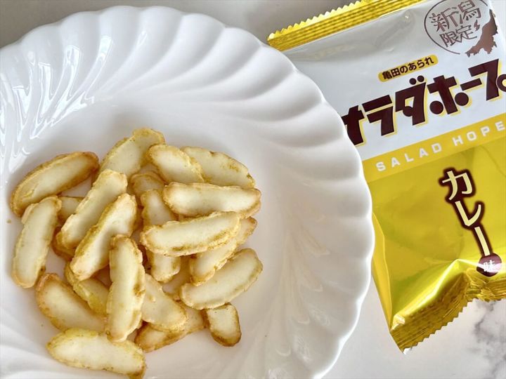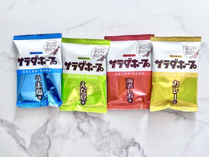 【新潟県限定サラダホープ食べてみた】4種ミックスはお土産にもおすすめ!うま塩・えだ豆・海老しお・カレーを食べ比べ