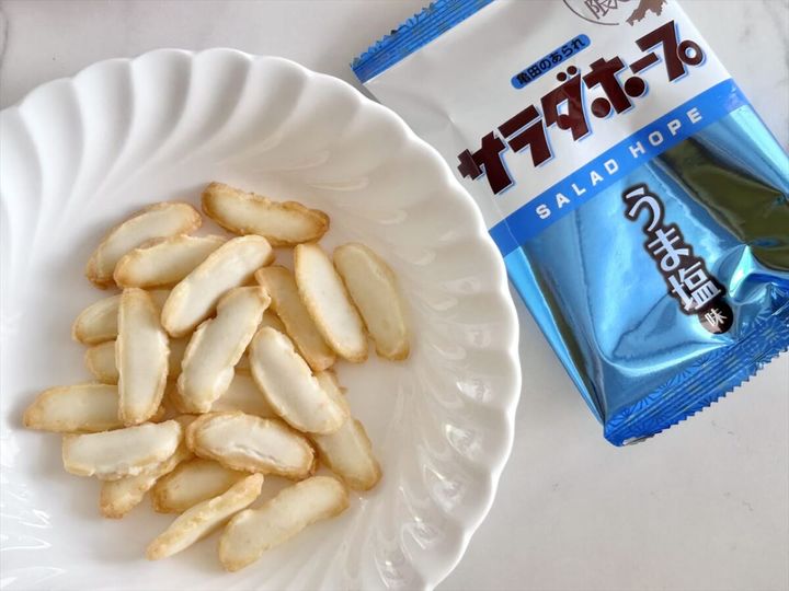 最初にいただくのは、「うま塩味」。サクサクとした軽い食感に、甘いお米の風味、そしてやさしい塩味。王道であり、やっぱりおいしいこの味。食べ始めると手が止まらなくなるおいしさです。