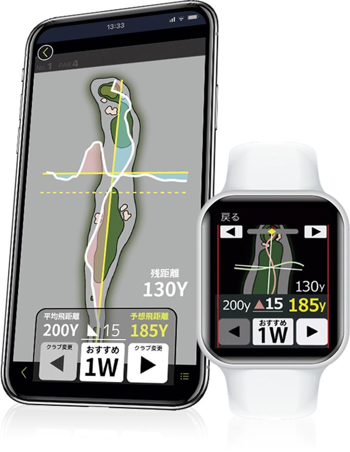 全国2,300コース以上の情報を収録、ユーザーの過去の平均飛距離から予想着地点付近の高低差、気温や気圧といった影響も考慮しておすすめのクラブを提示します。ひとつの課金でスマホでもスマートウォッチでも利用可能。