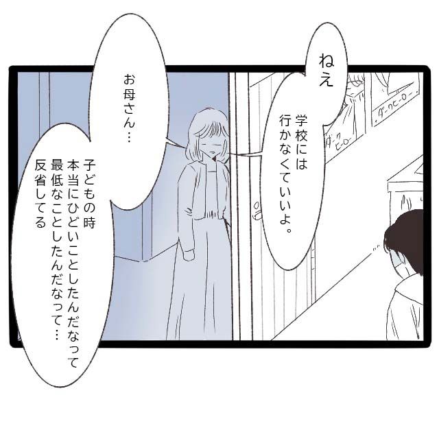 「ねぇ。学校に行かなくていいよ。お母さん・・子どもの時本当に最低なことしたんだって。反省してる。」
