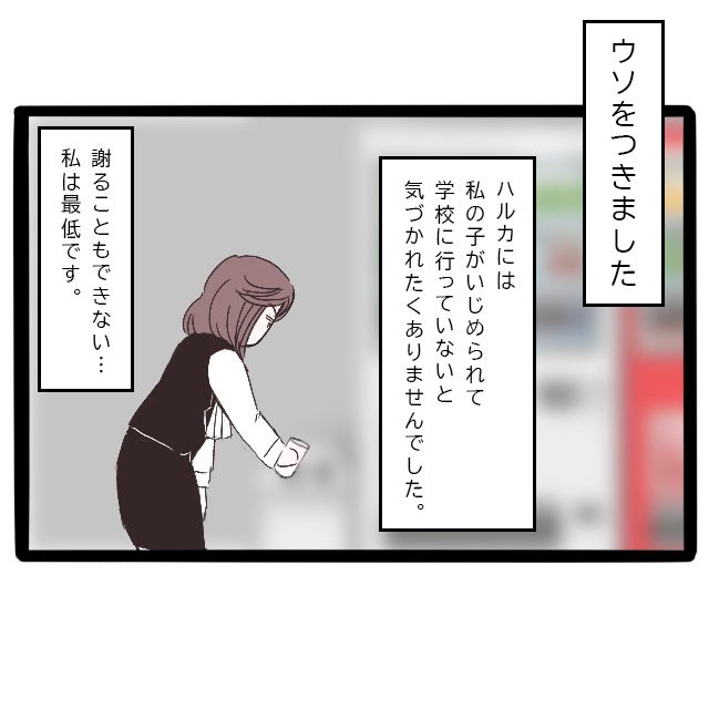 うそをつきました。私の子どもがいじめられて学校に行っていないと気づかれたくありませんでした。因果応報、ざまーみろ。そんな風に思われてしまうのではと思いました。