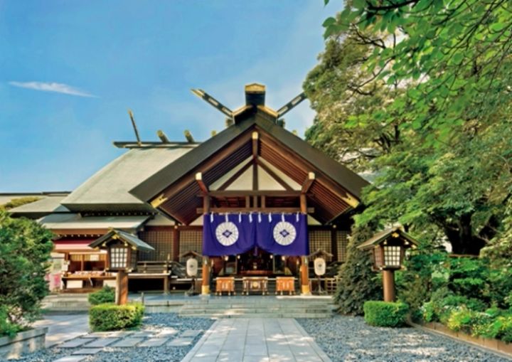 東京における伊勢神宮の遥拝殿として1880年に創建されたのが始まり。天照皇大神(あまてらすすめおおかみ)、豊受大神(とようけのおおかみ)、結びの働きを司る造化の三神があわせてお祀りされていて、縁結びに御利益があるといわれています。日本で初めて神前結婚式が行われた神社として有名です。