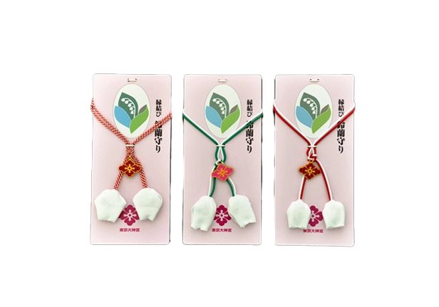 幸福が訪れるという花言葉の鈴蘭をモチーフにしたお守り。「身につけて半年で結婚が決まった」という声も!(各¥800)。