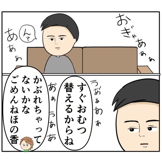 泣き止まないほの香ちゃんのおむつが替えていないことに気付いたすみれさん。
