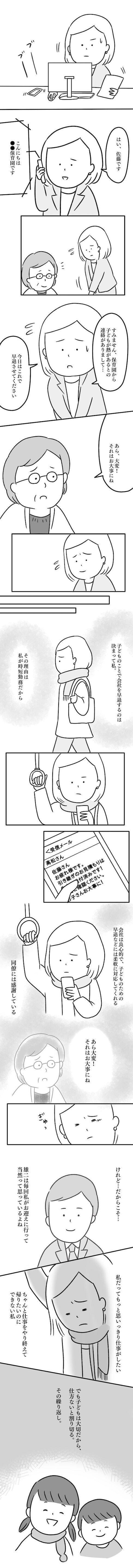 仕事をしながら育児をするということは本当に大変なこと。真由の職場はとても理解があり、早退なども柔軟に対応をしてくれているようですが、度重なる急なお迎えに、真由は罪悪感を感じているようです。仕事を思い切りしたくても、子どもがいる以上は子どもを優先するしかない現状に、モヤモヤしている様子がわかりますね。