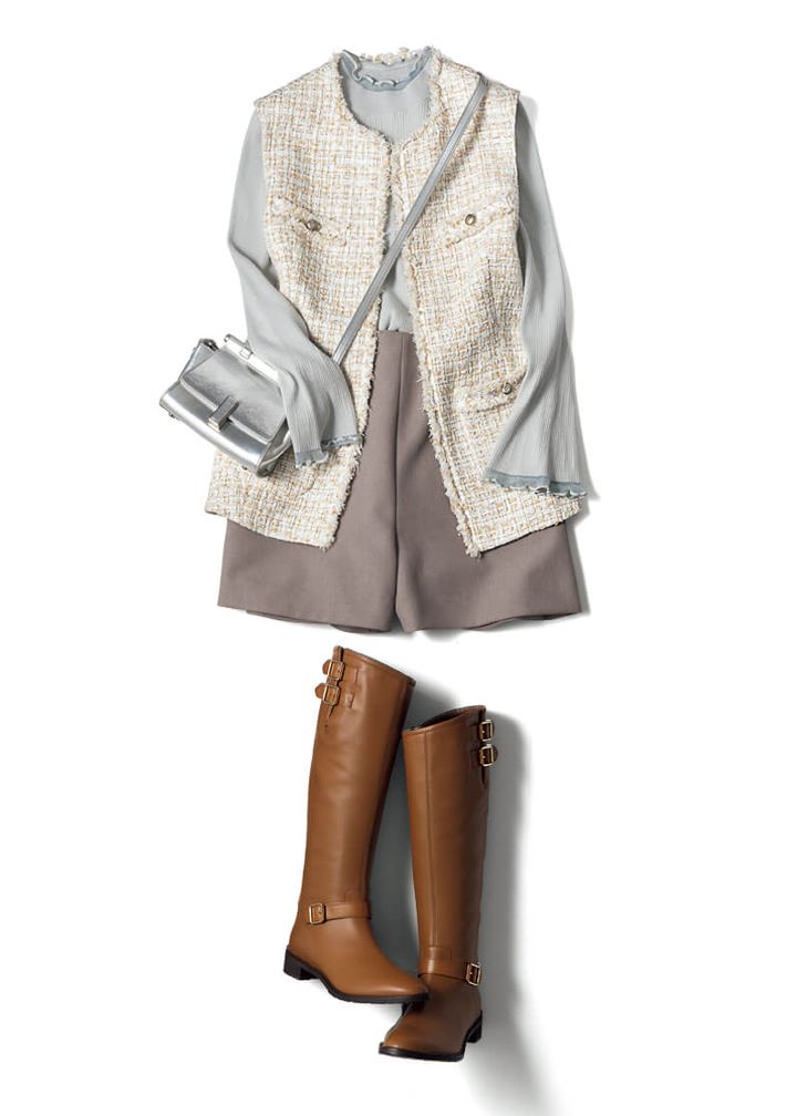 [バッグは使い回し]ジレ¥35,200/クードシャンス(ワールド プレスインフォメーション) ニット¥7,920/PROPORTION BODY DRESSING パンツ¥15,400/アプワイザ ー・リッシェ 靴¥48,400/銀座かねまつ(銀座かねまつ6丁目本店)