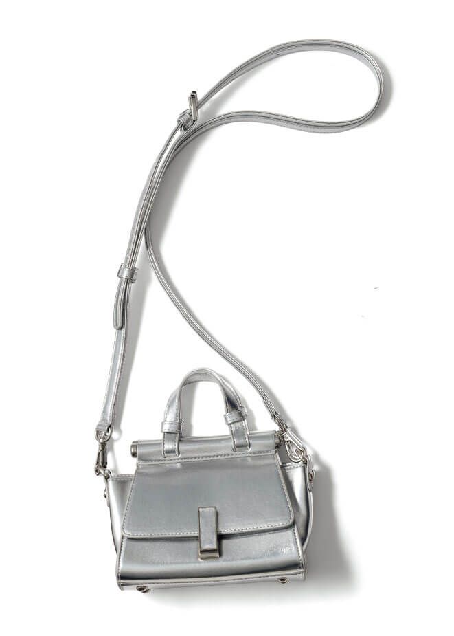 マイクロサイズは斜め掛けしても好バランス。派手すぎないシルバーは淡色と合わせると、すっとなじみます。